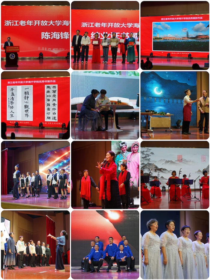 海宁市教育局、民政局相关科室负责人,以及嘉兴开放大学、海宁老年大学、海宁老年电视大学等老年教育机构多位领导出席活动,共同见证这场融合学习成果、艺术表达与精神风貌的展示活动。