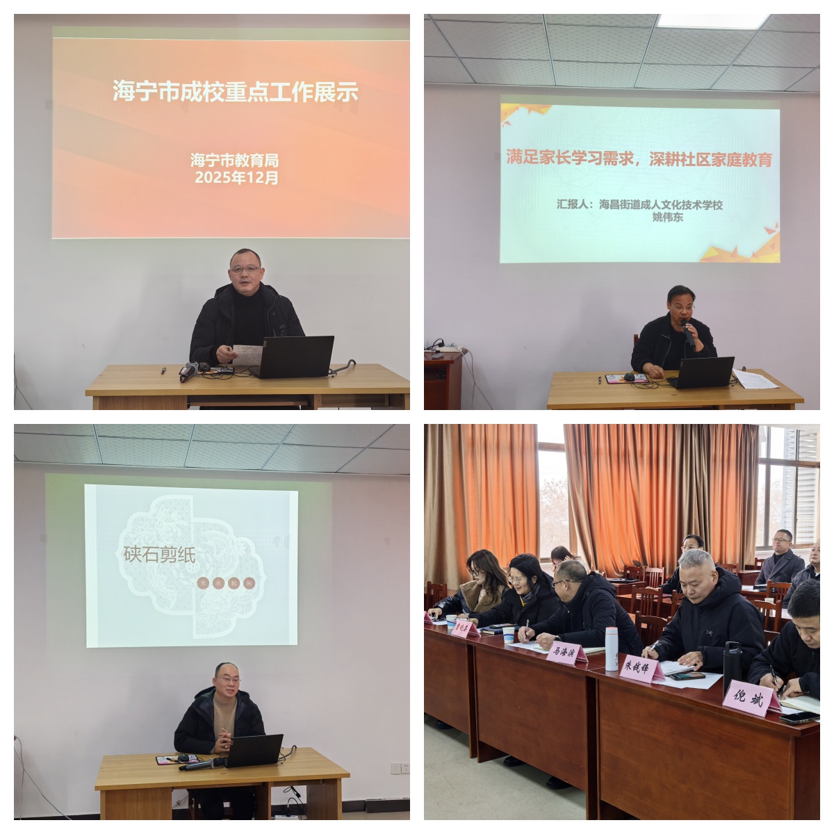根据海宁市教育局2025年成人教育与社区教育年度发展性评价的工作安排,海宁市成校亮点工作年度总结交流会于12月31日上午在海昌成校召开,海宁市教育局副局长马海滨和职成教科科长朱钱锋等出席交流会。
