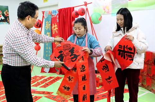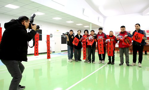 志愿者们为新胜残疾人之家的员工提供免费专业摄影服务,并精心打印照片赠予每位员工,同时邀请书法家协会老师现场挥毫,书写寓意吉祥的对联与“福”字,为冬日增添浓浓暖意。