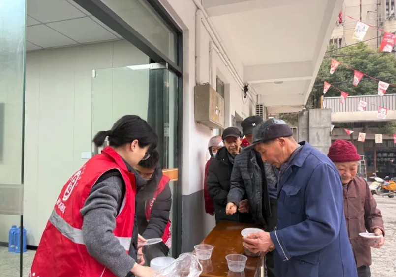 腊八节当天,社区养老服务中心暖意融融,熬制好的腊八粥香气四溢。粥被盛在印有“家是温馨港湾,廉是平安之桨”等标语的碗中,既暖胃,更“润心”。随后,工作人员和志愿者们将一碗碗热气腾腾的腊八粥递到居民手中,并送上新春的美好祝福。