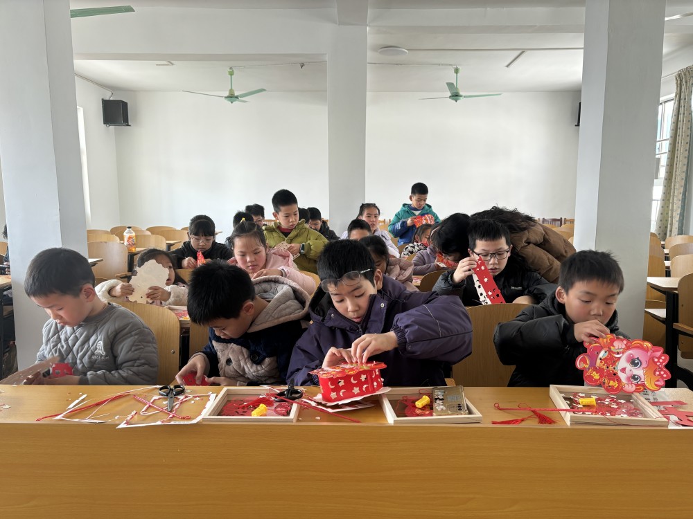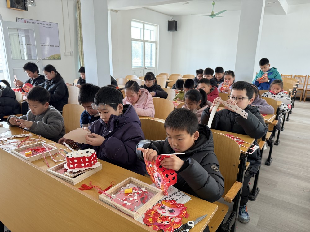巧手剪纸:一剪一纸寄祝福。“剪纸时要先折好纸,慢慢剪出形状……”在剪纸环节,村新时代文明实践站工作人员一边演示一边讲解。孩子们围坐在一起,小手握着安全剪刀,认真地在红纸上游走。不一会儿,栩栩如生的生肖、绽放的窗花、灵动的“福”字在孩子们手中诞生。