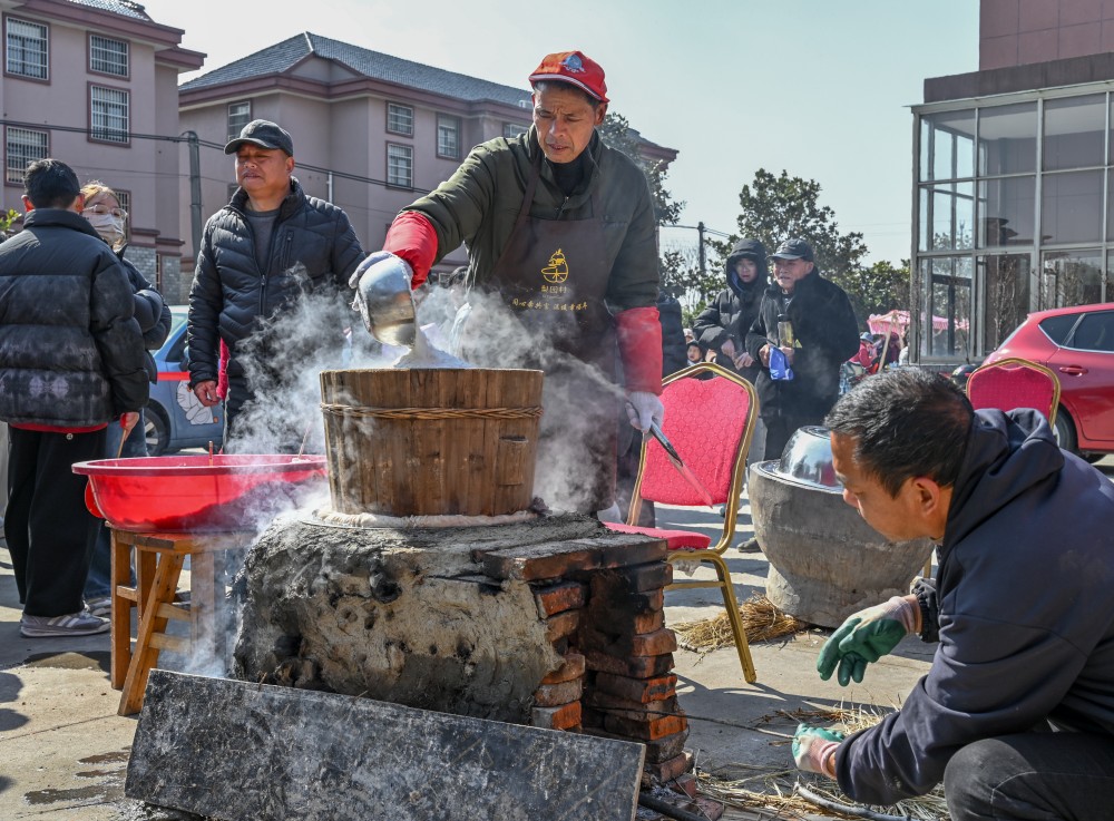 年糕飘香邻里聚,喜乐融融迎新春。打年糕区热闹非凡,几位老师傅挥动木槌。在“咚咚”的捶打声中,糯米的香气渐渐飘散。刚出炉的年糕蘸上白糖,软糯香甜,寓意着新年步步高升。