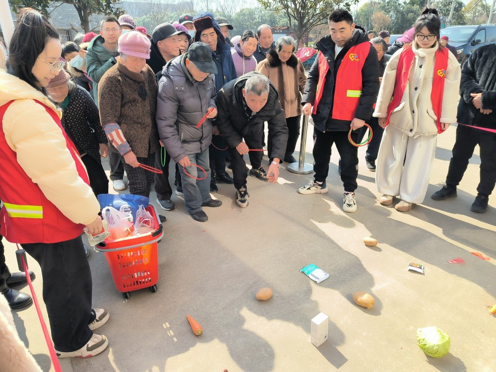 套蔬菜·圈住丰收好彩头。蔬菜套圈区排起了长队,洋葱、土豆、包心菜等整齐摆放。村民们跃跃欲试,每当有人套中,便引来一片喝彩。这不仅是游戏,更是对新一年五谷丰登、衣食无忧的美好祈愿。