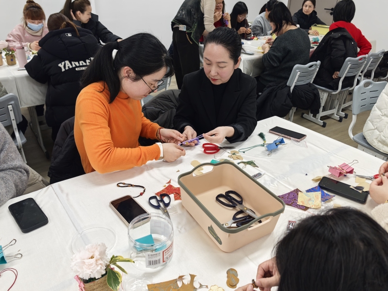 在轻松愉悦的氛围中,大家互相交流制作心得,分享创意灵感,于一裁一剪、一粘一贴间,感受宋韵文化的雅致之美,也体验着手工创作带来的乐趣与成就感。一件件独具匠心的宋锦挂件相继诞生,或古朴典雅,或精巧别致,既展现了女性细腻灵动的审美与巧思,也寄托着她们对美好生活的热爱与向往。