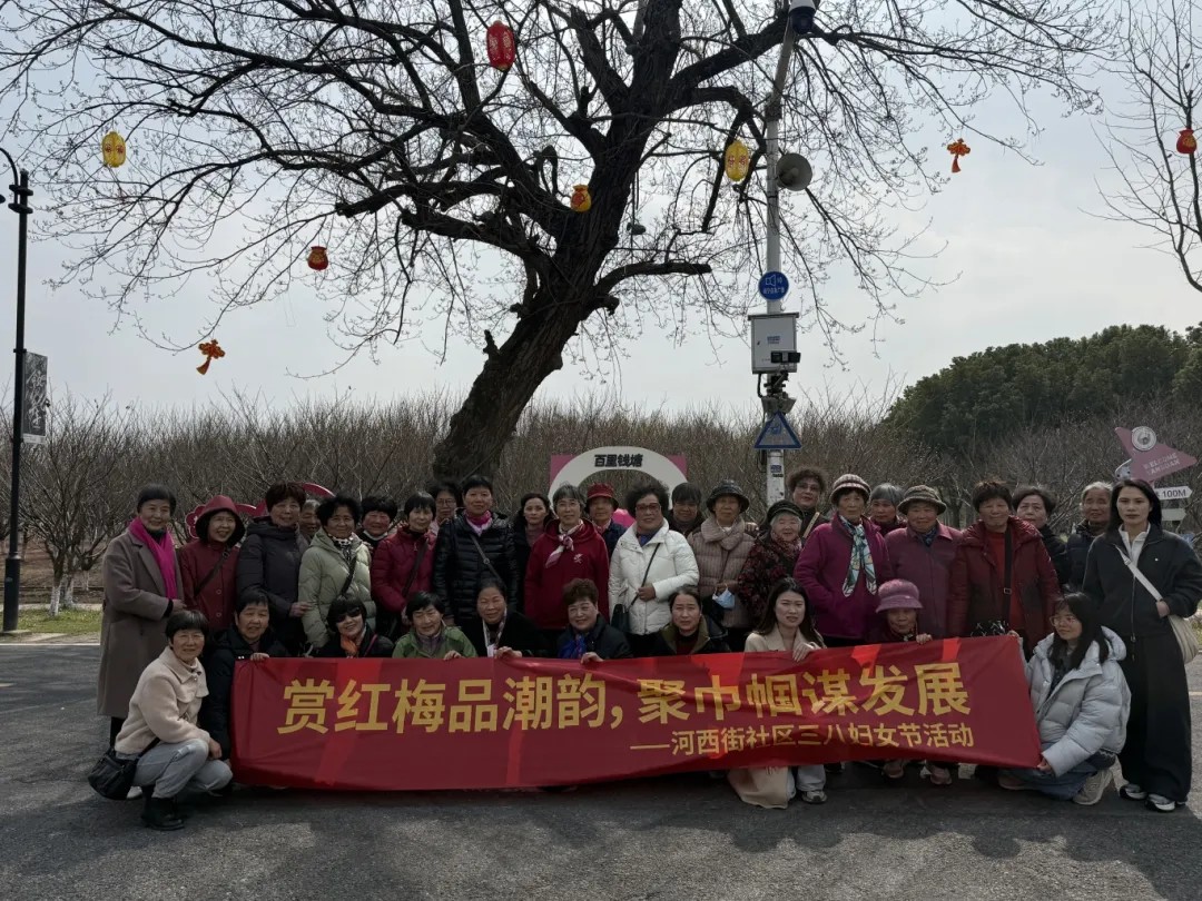 踏春健步,悦享芳华。 濮桥村社区学校开展“芳华女神节·健康伴我行”三八妇女节活动,妇女同胞欢聚一堂,共庆节日、共赏美景、共学养生、共享欢乐。大家前往神仙湖踏春健步走,尽情领略家门口的春日美景,在运动中释放压力、强健体魄。河西街社区学校开展“赏红梅品潮韵,聚巾帼谋发展”妇女节活动,在盐官九里桥生态梅林、“潮乐之城”特色街区,大家结伴漫步春景之中,体验传统非遗,展现女性积极向上的精神风貌。长啸村社区学校的妇女姐妹们赴海盐丰义景区登山踏青,在春日山野间放松身心、凝聚力量,增进邻里情谊与集体归属感。